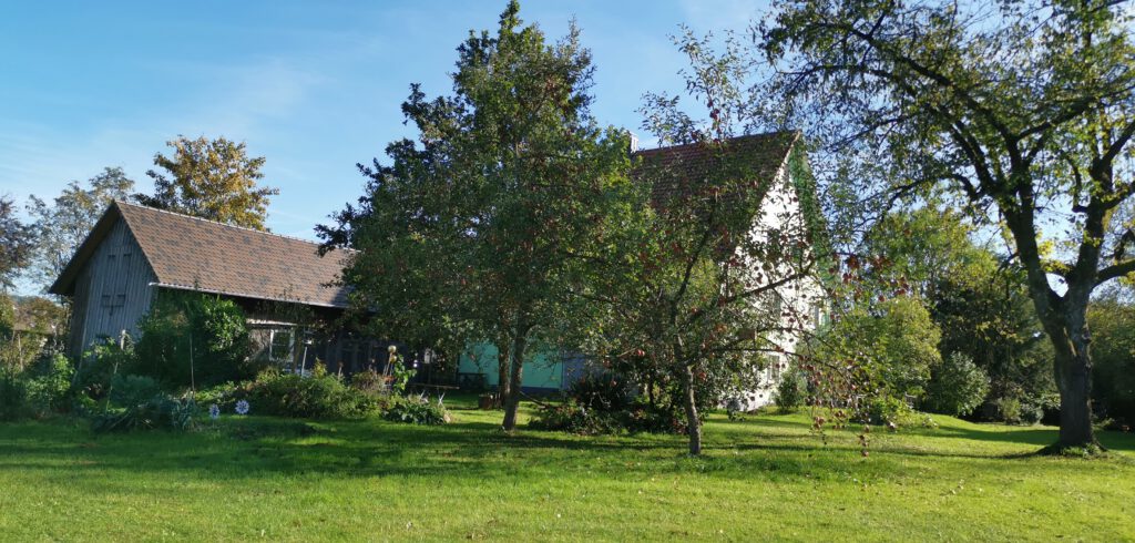 Angrenzend an den alten Hof liegt ein Obstgarten mit alten und neueren Baumbeständen, Sträuchern, Büschen und 2 Gemüsegärten. Der Obstgarten umfasst zusätzliche 2.581 qm.